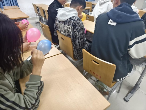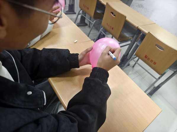 活动开始前,志愿者们早已将五颜六色的气球、马克笔整齐摆放在各自习教室的活动角,气球的缤纷色彩与自习室的书香气息相互交融,瞬间驱散了夜晚学习的疲惫。志愿者们耐心向陆续前来的同学介绍活动规则,“大家可以把近期的烦恼、焦虑、压力或者未说出口的心愿,都一笔一画写在气球上,写完后我们一起到室外放飞,让这些情绪随着气球飘向远方。”亲切的讲解让同学们迅速放下拘谨,纷纷拿起笔和气球参与其中。