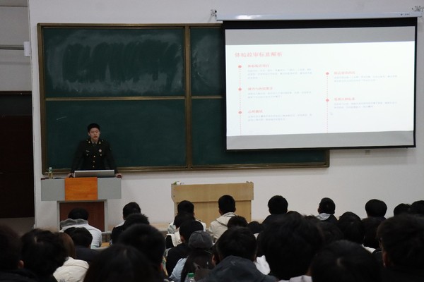 李明诚结合自身军营经历,从“政策解读、军营生活、成长收获”三个维度展开分享。他围绕2025年征兵征集条件、报名流程、时间节点等核心内容,重点讲解了学费补偿代偿、升学优惠、就业扶持、户籍档案转接等学生关心的优待政策,通过政策条文拆解与实际案例分析相结合的方式,让同学们对征兵政策有了全面、清晰的认知。同时,他用生动的故事、鲜活的画面,分享了自己在部队的训练日常、执行任务的难忘经历以及战友间的深厚情谊。他还结合电气工程专业特色,鼓励同学们发挥专业优势,在军营中找准定位、施展才华,为军队信息化、智能化建设添砖加瓦。