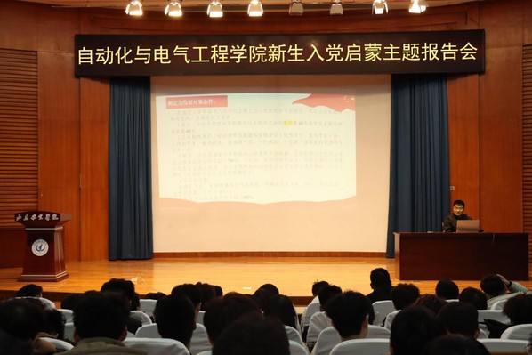 为深入学习贯彻习近平新时代中国特色社会主义思想,全面落实立德树人根本任务,引导电气学子将专业学习与思想成长有机结合,明确入党方向与成长路径。2025年12月5日,学院在明德报告厅举办新生入党启蒙教育专题讲座,辅导员商世昌主讲,2025级全体学生参加。