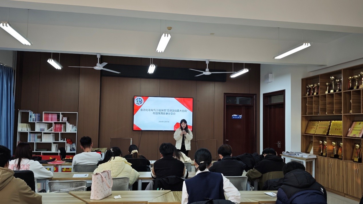 为深入学习贯彻习近平新时代中国特色社会主义思想,全面落实立德树人根本任务,引导广大青年学子坚定理想信念、厚植家国情怀,进一步激发使命担当、凝聚强国奋进的青春力量。2025年12月7日,自动化与电气工程学院在11号教学楼310教室举行“立报国强国大志向”校园强国故事分享会。