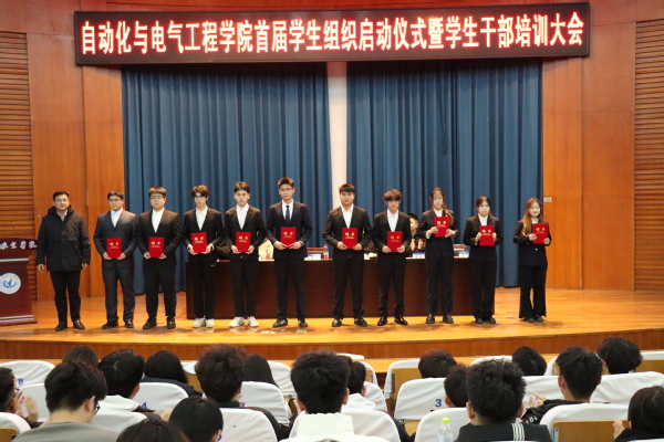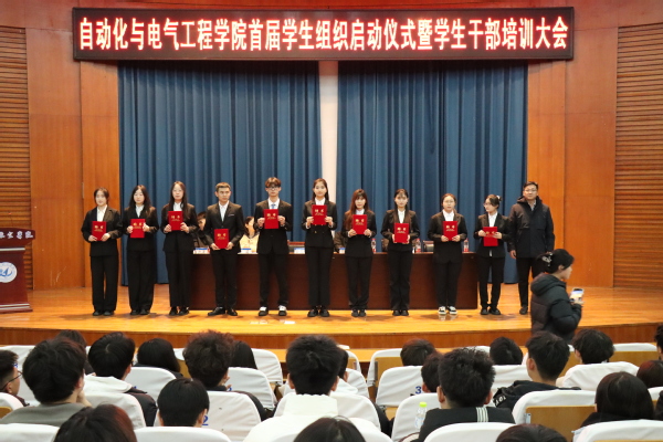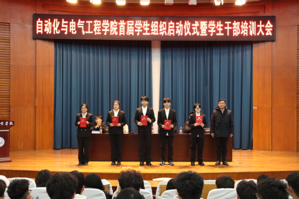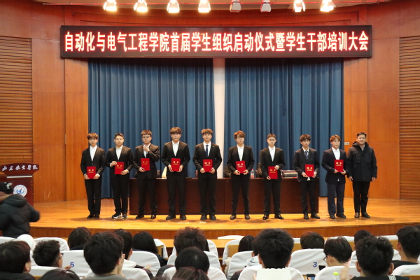 为凝聚学生力量、搭建成长平台,充分发挥学生组织在学院人才培养与校园文化建设中的桥梁纽带作用,2025年12月11日,自动化与电气工程学院首届学生组织启动仪式在明德报告厅隆重举行。学院党委副书记金志杰出席仪式,辅导员徐可主持,学院辅导员王莉、商世昌、李梦超、崔凯晨参加,学生组织全体成员参加。