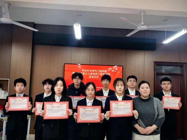 为深入学习贯彻习近平新时代中国特色社会主义思想,扎实推进青年马克思主义者培养工程,结合“大思政课”安排,2025年12月25日,自动化与电气工程学院在11教310教室举行青马工程培训班结业仪式。辅导员徐可主持,培训班全体学员参加。