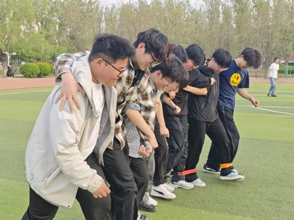 活动现场设置五大趣味竞技项目,将心理疗愈融入团队协作之中。“百发百中”里,同学们合力操控木鼓击打沙包,在一次次配合中凝聚团队默契;“趣味萝卜蹲”以欢快口令点燃全场,在反应与协作中释放压力;两人三足接力赛中,学子们步调一致、携手向前,在折返路上传递信任与鼓励;趣味丢沙包与背靠背夹气球运输项目更是将氛围推向高潮,大家在闪避与冲刺、协作与配合中卸下防备、舒展情绪。本次户外拓展以“运动健心”为核心,将团队协作与心理调适深度融合。电气学子在竞技中学会沟通、筑牢信任,有效舒缓学习压力,提升情绪调节能力。