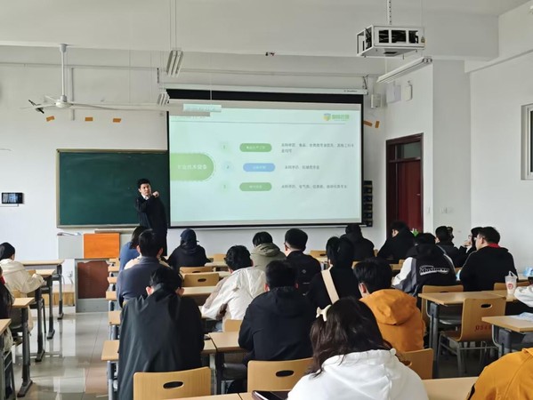 宣讲会上,企业负责人王彤围绕公司核心业务、产业布局、企业文化、人才培养体系等内容展开详细介绍,全面展示了企业在粮油食品、生物科技等领域的行业优势与发展前景。负责人针对同学们关心的招聘岗位、薪资福利、晋升通道、实习实训等问题进行了逐一解读,重点分享了企业针对高校毕业生的专属培养计划与成长路径,让同学们对企业有了更清晰、全面的认知。随后,同学们就工作地点、实习安排、岗位内容等问题积极提问,负责人耐心解答,并结合自身职业经历分享行业趋势与成长心得。最后,徐可鼓励同学们要树立正确就业观,抓住机遇投身企业发展。